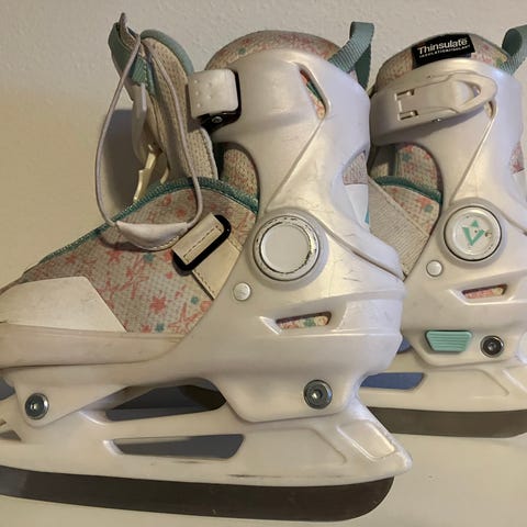 TecnoPro barnskridskor i storlek 35-38, Skridskorna är i gott skick men visst slitage syns. Slipning kan alltid vara bra. Skridskornas storlek är justerbar.