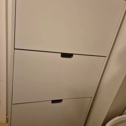 Svart skohylla i trä med metallpinnar från IKEA.