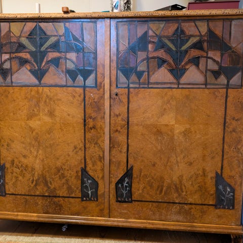 Okänt märke Skåp med lådor och dörrar i trä och mörkbrun finish