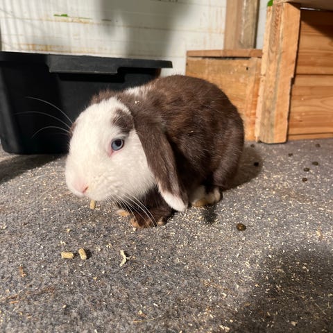 Jättesnäll och social kille som är född juni -24. Renrasig vit blåögd dvärgvädur