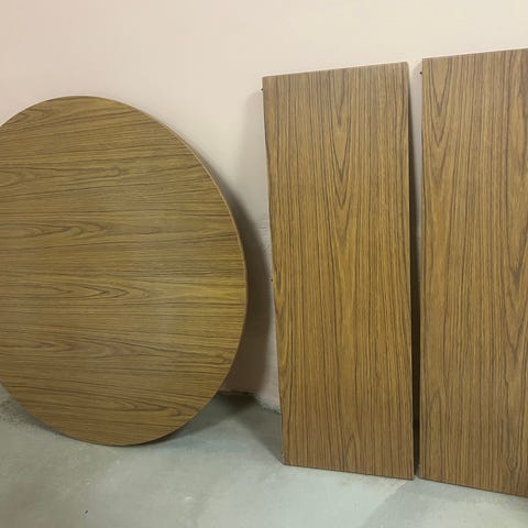 Matbord i teak med plats för många, två extra iläggsskivor för extra utrymme vid behov. Perfekt för både vardag och fest. Mått: Diameter 115cm, Längd 115cm + 2 skivor 55+55cm =225cm, Höjd 73cm, Djup 115cm.