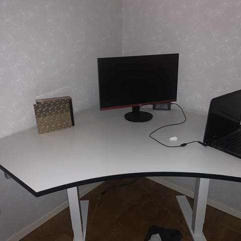Har ett stabilt arbetsbord som inte används längre till övers. Underredet är i metall. Går ju såklart att byta skiva och snygga till underredet så har man ett prima bord.