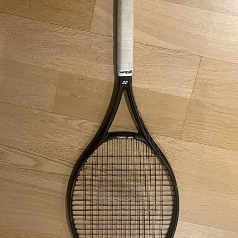 Tennisracket Yonex Vcore 98 sand beige. Racketen är använd men väl omhändertagen, inga sprickor eller skador, endast normal slitage ( se bilder).