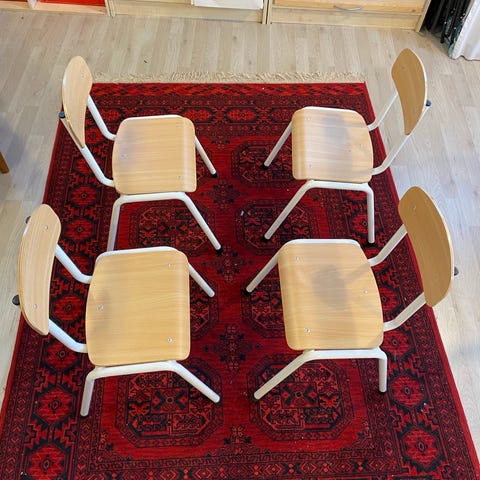 2 st stolar för barn i trä från IKEA. Stolarna behöver slipas och målas om men är i övrigt i bra skick.