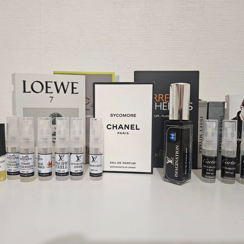 Liten, perfekt storlek på sprayflaska för parfym som gör det lätt att ha med sig sin favoritparfym. Ha i gymbagen, när du ska på en weekend el veckosemestern, eller ha den liggande där du jobbar för att fräscha upp dig efter en hård arbetsdag. Perfekt som present. Nya. Gjorda i aluminium och har ett fönster för att kunna se parfymmängd. Ca 90 mm hög. De rymmer ca 5ml och är alltså godkänd att ha i handbagaget när du flyger. Fylls på genom att ta bort locket på din parfym och sätta pipen mot undersidan av den påfyllningsbara flaskan och sedan pumpa tills det är lagom påfyllt. Finns i flera färger. Har blå, svart, silver, röd, rosa, guld, lila o grön. Köp tre 139 Köp två 89 Köp en 49 kr Kan hämtas på kungsholmen eller så skickar jag (frakt 18 kr). Swish, konto eller cash.