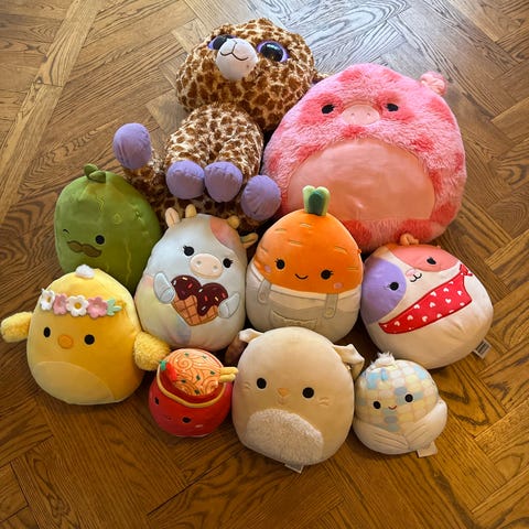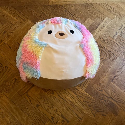 Squishmallows mjukisdjur i form av en enhörning, rosa färg, mjukt material.