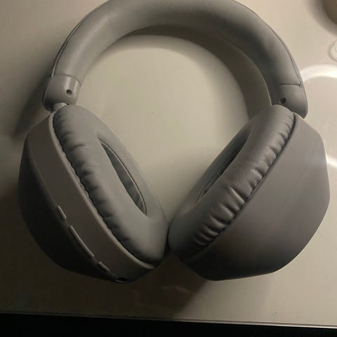 Sony hörlurar över örat i svart färg. Model 1000XM5. Designade för att ge bekväm passform och ljudisolering. Passar för allmän användning med justerbar huvudbygel och mjuka öronkuddar.