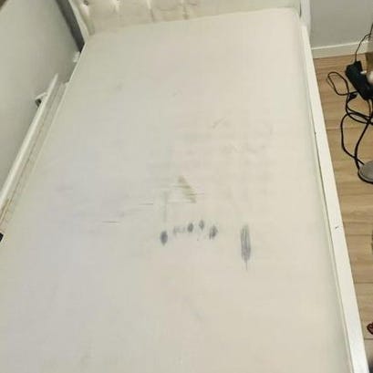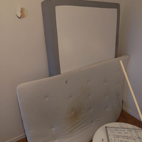 sängen e ca 6-7 år gammal, inga skador, tung väggavel men fin.