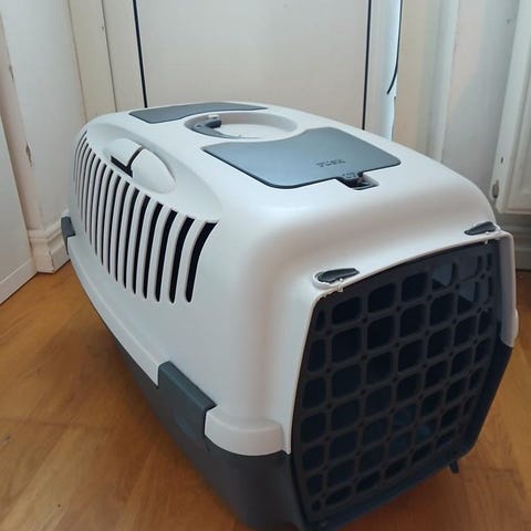 Ferplast Capri transportbur i grön och vit färg. Tillverkad i plastmaterial med ventilationsöppningar och bärhandtag. Passar för små husdjur vid transport.