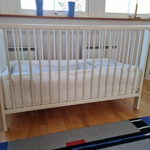 IKEA Spjälsängar barnsäng i vit färg. Tillverkad av material som är lämpliga för barnrum. Passar för små barn och erbjuder en säker sovplats.