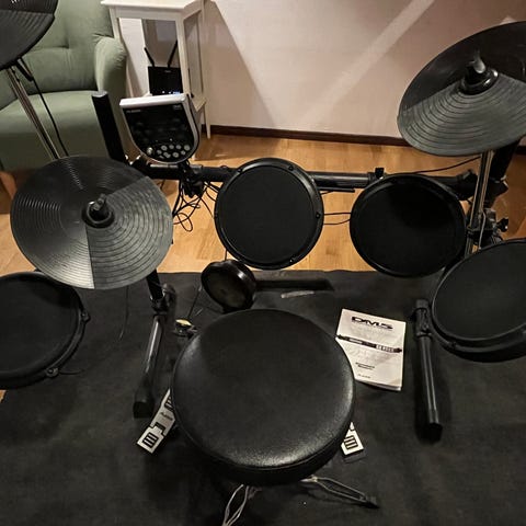 I priset ingår trumstol, trumpinnar och hörlurar.