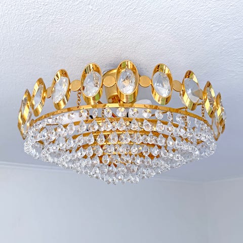 Pampig gammal kristallkrona med äkta prismor, guldförgylld - 1900-tal