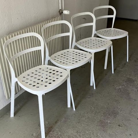 Stapelbara stolar med armstöd. Design: Lilian Milhov. Märke: SeatTable by ORT.
