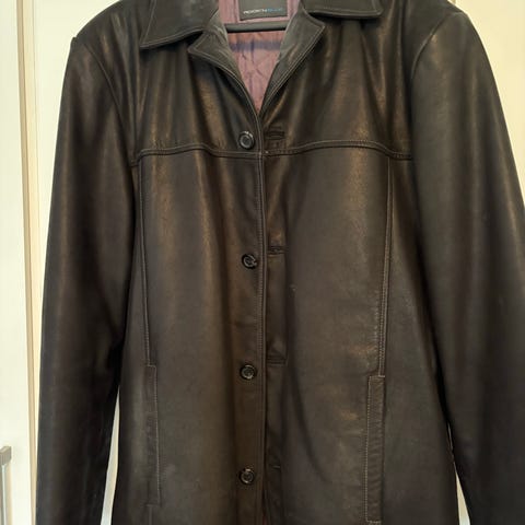 Milestone Fodrad skinnjacka/kavaj i brun färg, storlek 50 för herrar. Tillverkad i läder med en mjuk och varm foderdetalj i kragen. Passar som ytterplagg vid kyligare väder.