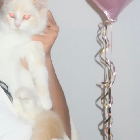 Alla hennes tillbehör ingår i priset, såsom kattlåda, matskålar, leksaker, mat, m.m.