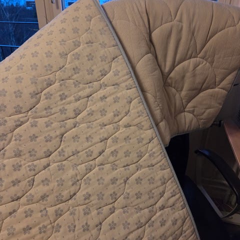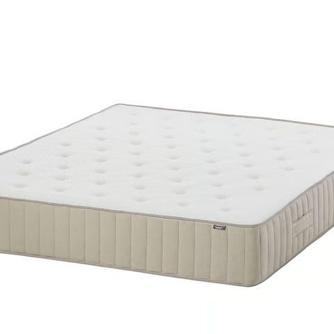 IKEA madrass i vitt tyg. Passar för användning i sängar och erbjuder en enkel och funktionell sovyta.
