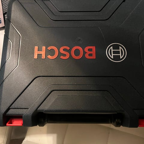 Yato YT-82901 skruvdragare med 12V batteri. Verktyget är röd och svart till färgen och levereras med tillbehör för skruvning och borrning. Passar för olika monteringsarbeten.