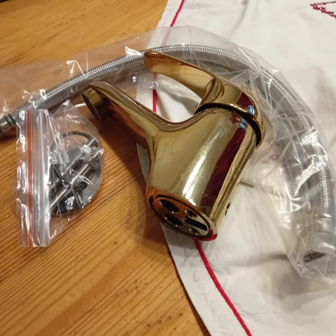 Har köpt till min ny renoverade tvättstugan. Det passade inte för att jag har gammal system. Passar kök, badrum och tvättstugan. Det går att dra ut vattenpipa och använda som slang. Den är riktigt fin