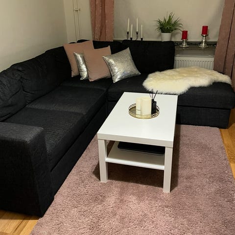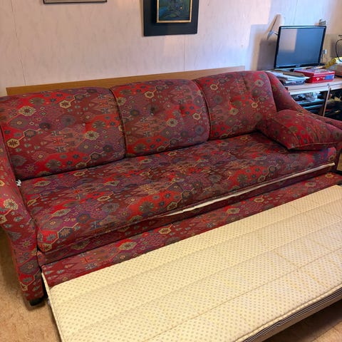 Bäddsoffa, ser helt oanvänd ut. Lätt att fälla ut. Förvaring i soffan