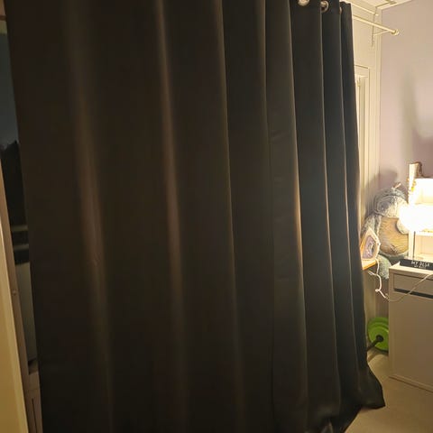 Två gardiner med omtag. Lite stadigare bomullstyg. ( Parfym och djurfritt)