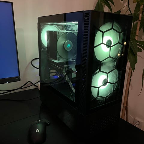 Snygg glaspanel på sidan så att man kan se allt dyrt och fint inuti. Maximal luftflöde med mesh-frontpanel och strategiskt placerade fläktar för effektiv kylning. Rymligt chassi med gott om plats för stora grafikkort, CPU-kylare, flera lagringsenheter och dold kabeldragning. Optimerad för låg ljudnivå utan att kompromissa med kylprestanda.