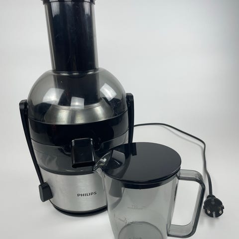 Electrolux råsaftcentrifug ESF2000 – kraftfull juicepress i rostfritt stål med tillhörande behållare i plast. Passar för att pressa juice från frukt och grönsaker.