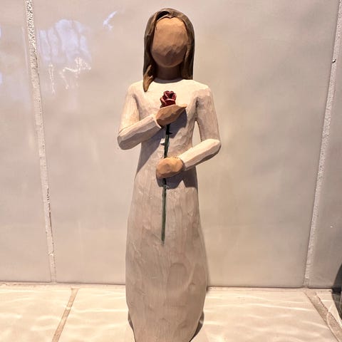 Caring Child" är en handmålad hartsfigur från Willow Tree-kollektionen, skapad av konstnären Susan Lordi, som visar en sittande pojke i blå jeans och vit skjorta. Figuren, en del av serien "Roses in my Garden".