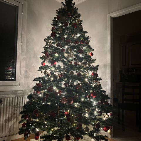 Högkvalitativ Konstgjord julgran. Köpt för år sen men inga skador eller något som saknad utan några skador och ser nu ut. Granen är brand säker! 💕 bara skriv vid frågor💕💕 behöver hämtas upp .
