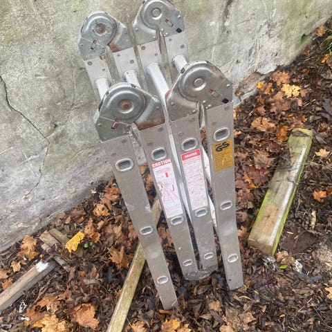 Utfällbar stege i två delar som är 6.9 m och går att fälla ut till en totallängd på 13.8m.