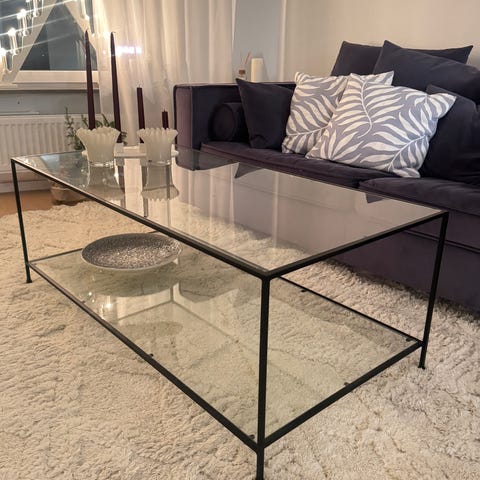 Som nytt! Fint fyrkantigt soffbord. Ben i svart metall och bordsskiva i glas. Köpte det för 3900 kr.