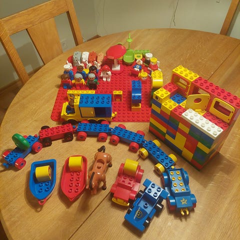 Finns alt möjligt från bilar, båt, ubåt, djur, gubbar, bondegrejer, fönster, klossar osv.