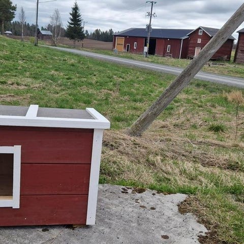Oanvänd isolerad hundkoja. 70 mm cellplast, OSB invändigt. Öppningsbart tak. Isolerad lucka (kanalplast) med rostfria detaljer, se www.slagugglan.se.
