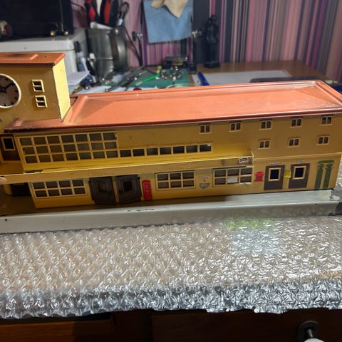 Demonterad modelljärnväg, diverse byggnader, behöver limmas