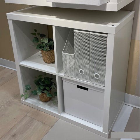 IKEA Förvaringsenhet på hjul i trä med öppna fack för förvaring. Möbeln är designad för att enkelt kunna flyttas tack vare hjulen och passar för organisering av olika föremål i hemmet eller kontoret.