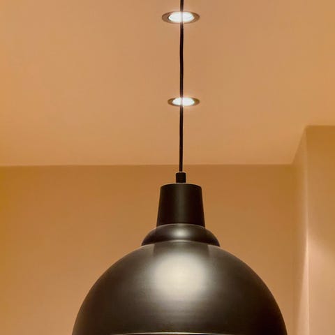 Mycket fin och fungerande taklampa. Design Niclas Hoflin. Svartlackerad plåt. Tre ledlampor som kan tändas separat/tillsammans. Matt glas på undersidan.