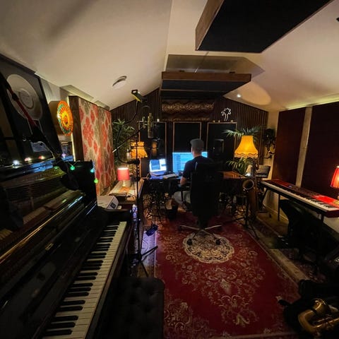 Liten Prodstudio. Ca 4 x 3 meter. (Vinklad vägg)