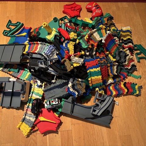 Bilarna och halva banan är av orginalmärket Flexitraxx, andra halvan av banan är en kopia som matchar av märket MagicTraxx.