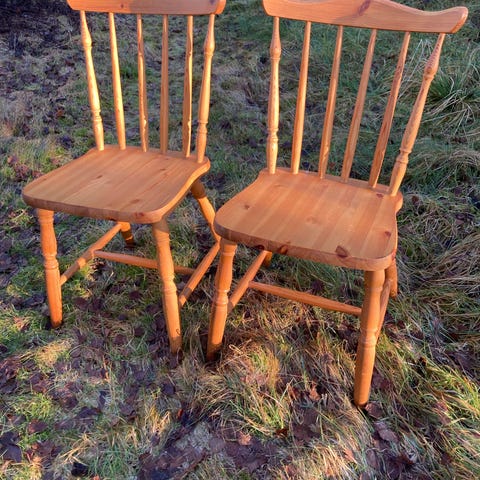 Säljer 2 stolar där benen är utbytta till metallben, stolarna har kort rygg och har metallben som man själv får besörja med träskruv under. Så för den som är lite händig och vill ha billiga originella stolar.