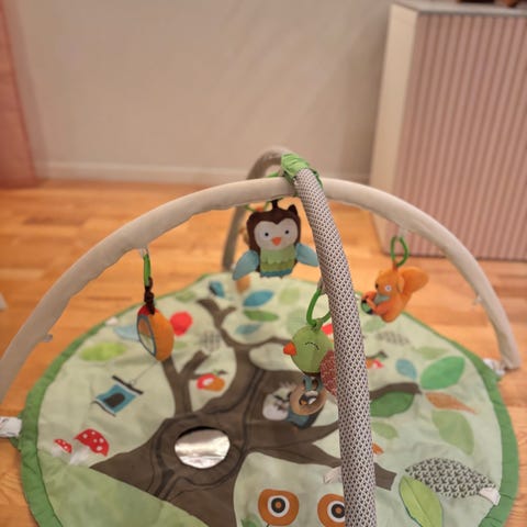 Vi säljer vårt babygym från Skip hop med mjuk matta, kudde (ej med på bild, men finns), bågar, spegel och 5 leksaker.
