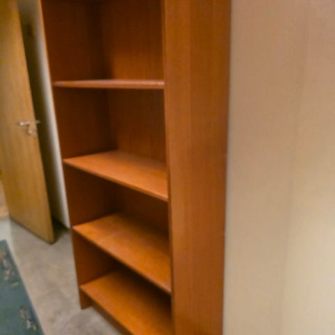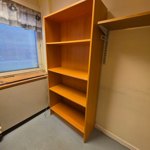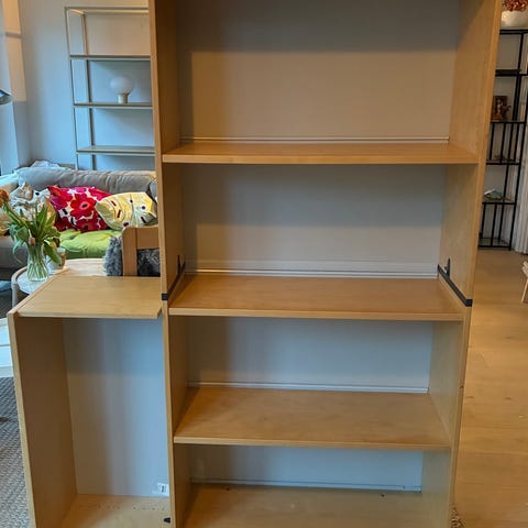 bokhylle-vägg med vitrinskåp, med liten fuktskada, (från tillbringare)