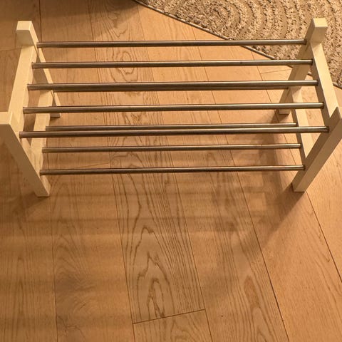 Utdragbart skohyllplan, vit,100x58.Inköpt i år,inga skavanker,skena och skruvar.