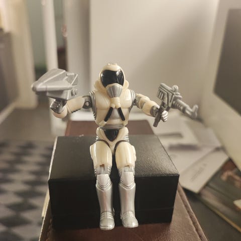 Säljer ett paket med actionfigurer och leksaker med superhjältar.