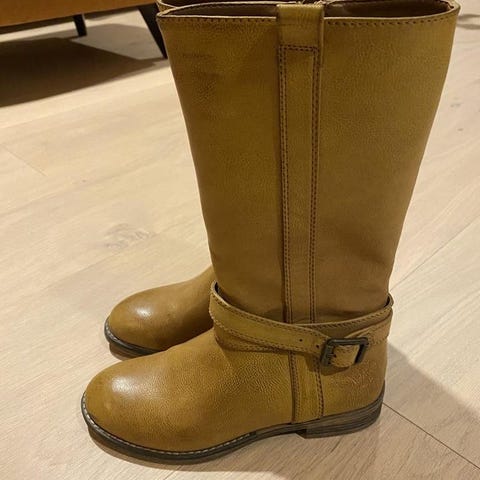 Bisgaard barnstövlar i storlek 32. Stövlarna är mörkblåa och tillverkade i gummi. Sulorna är mönstrade för bra grepp. Insidan av stövlarna är fodrad med ull.