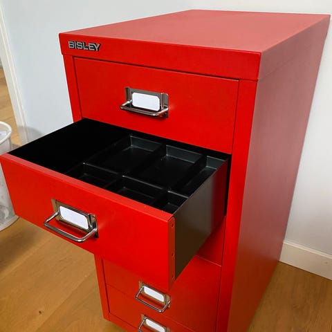 Stabil och rymlig, fungerar bra som förvaring vid skrivbord eller i arbetsrum.