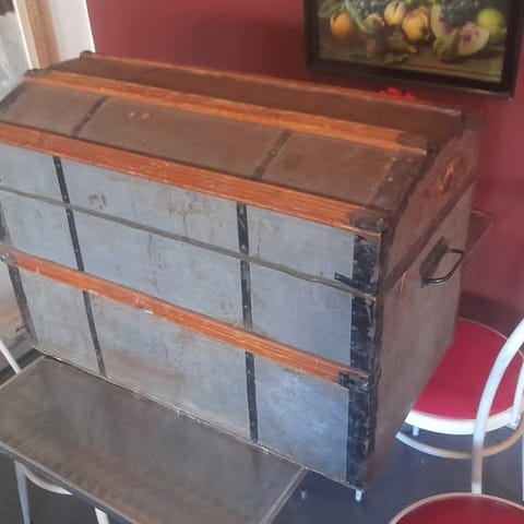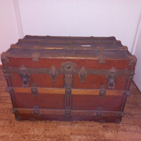 Bra skick i övrigt, men hyllan på insidan saknas. Slitet där hyllan har suttit.