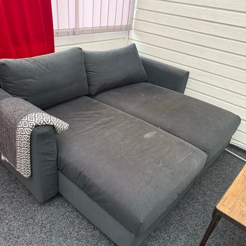 Skänker bort en boxsäng 180x200 cm, mörkgrå.