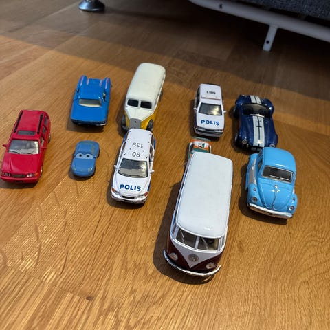 Massor av leksaksbilar/flygplan/arbetsfordon