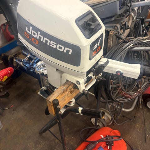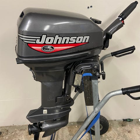 Johnson GT 10 - 90-tal, servad och genomgången. Perfekt för din jolle eller gummibåt, lätt och stark båtmotor.