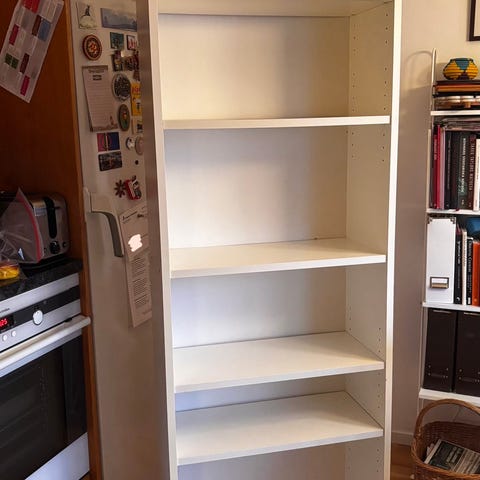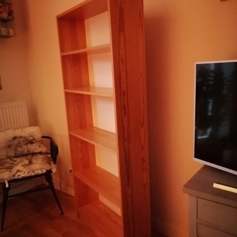 Bokhylla (inte Billy) som tyvärr har brännmärken efter ljusstake högst upp. Kan ju döljas med en duk eller prydnadsföremål. Fås gratis mot avhämtning.