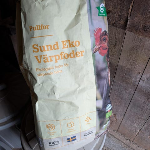 Hej :) Nu finns de o köpa ekologiskt värpfoder/hönsfoder :) från o tillverkat av Svenaka Foder AB , ca 2 månader gammalt , Silon ska tömmas då en ny har införskaffas till våra höns .Pris per säck (50kg ) 499kr st :) . En ensam hönas foderintag ligger ca på 4,5-5 kg per månad . ha ett gott slut på året o en fin fortsättning . Mvh :)